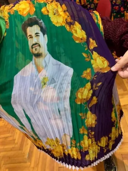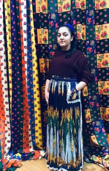 Szerencsére volt lehetőségem felpróbálni a számomra legszebb szoknyát. A szoknyán Kemal Soydere és Nihan látható. Egy világhírű török sorozat szereplői, amit a magyarországi cigányok nagyon imádnak. Hálás vagyok, hogy a Lippai Balázs Roma Szakkollégium vezetősége teljesítette a hallgatók kérését, ami nem más volt, mint meglátogassanak minket a Romani Design tervezői. Isten áldja munkájukat, terveiket.