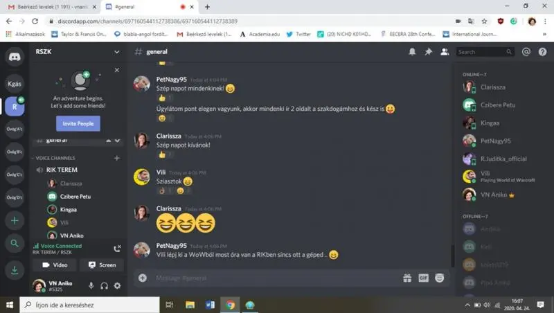 z IKT-kompetenciáik maximális kihasználásával számos online felületen működik együtt a közösség: Google Classrom, Google doc, email, Facebook nyílt és zárt csoportok, Messenger, Discord, Skype, Gmail Team. Éljen a digitális világ! Ezek a használatát nagyon élvezzük!